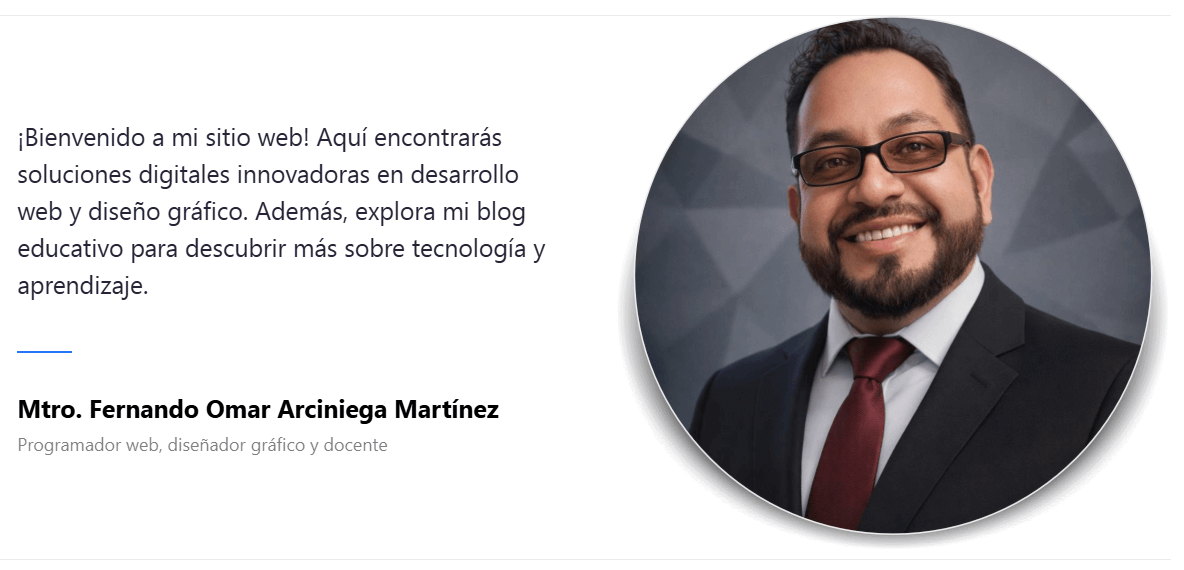 ¡Bienvenido a mi sitio web! Aquí encontrarás soluciones digitales innovadoras en desarrollo web y diseño gráfico. Además, explora mi blog educativo para descubrir más sobre tecnología y aprendizaje.