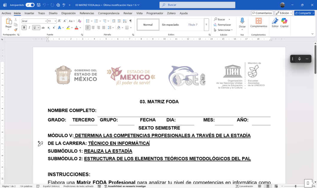 Descarga el documento de Matriz FODA para el Módulo 5 de Estadías: