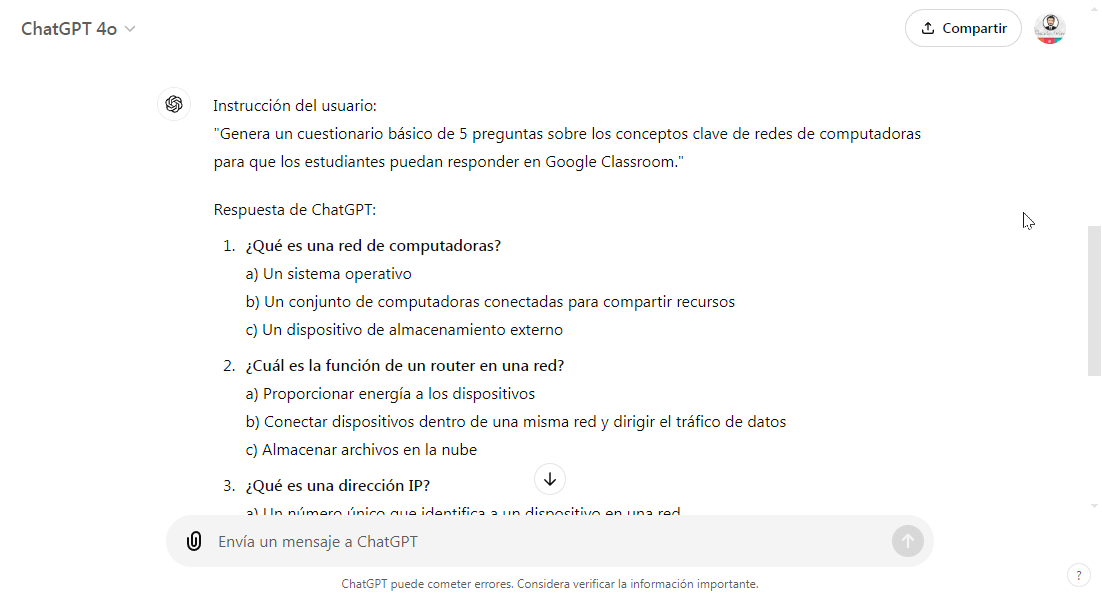 - Generación de actividades: Desde preguntas de opción múltiple hasta problemas para resolver, ChatGPT puede crear actividades que se adapten al nivel de cada estudiante.