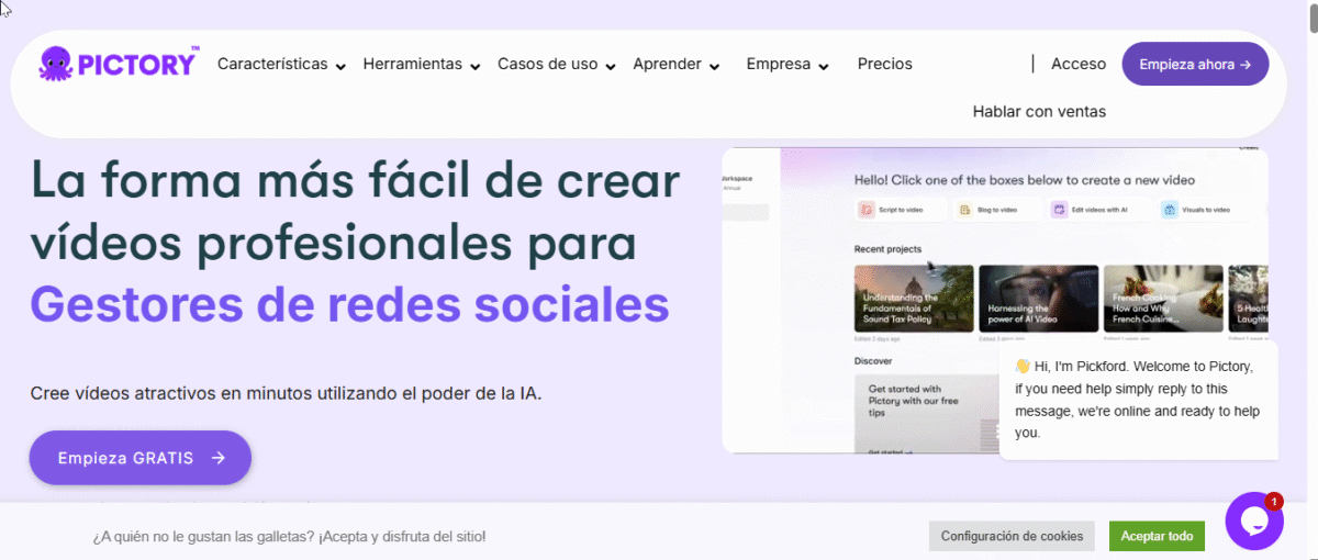- ¿Cómo te ayuda? Convierte tus guiones o incluso artículos de texto en videos cortos y atractivos con subtítulos automáticos e imágenes relevantes.