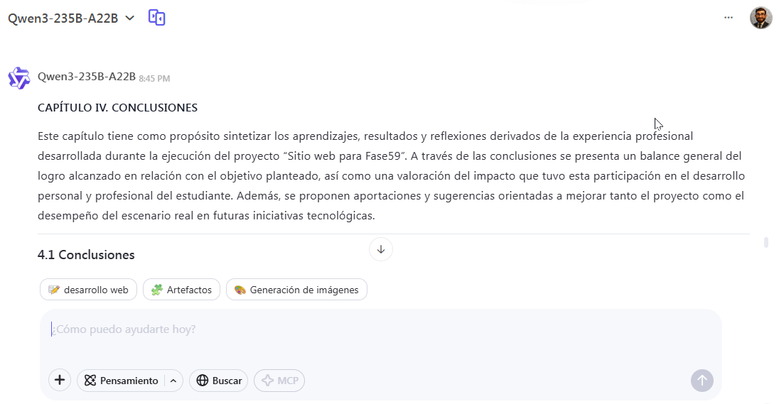 Hemos llegado al último tramo de la elaboración de tu Memoria de Trabajo para el CBT del Estado de México: el CAPITULO IV. CONCLUSIONES. Esta sección es fundamental, ya que permite sintetizar los aprendizajes obtenidos durante tu proyecto y ofrecer una perspectiva sobre el futuro. La inteligencia artificial puede asistirte en la estructuración de tus reflexiones finales y la formulación de propuestas significativas.