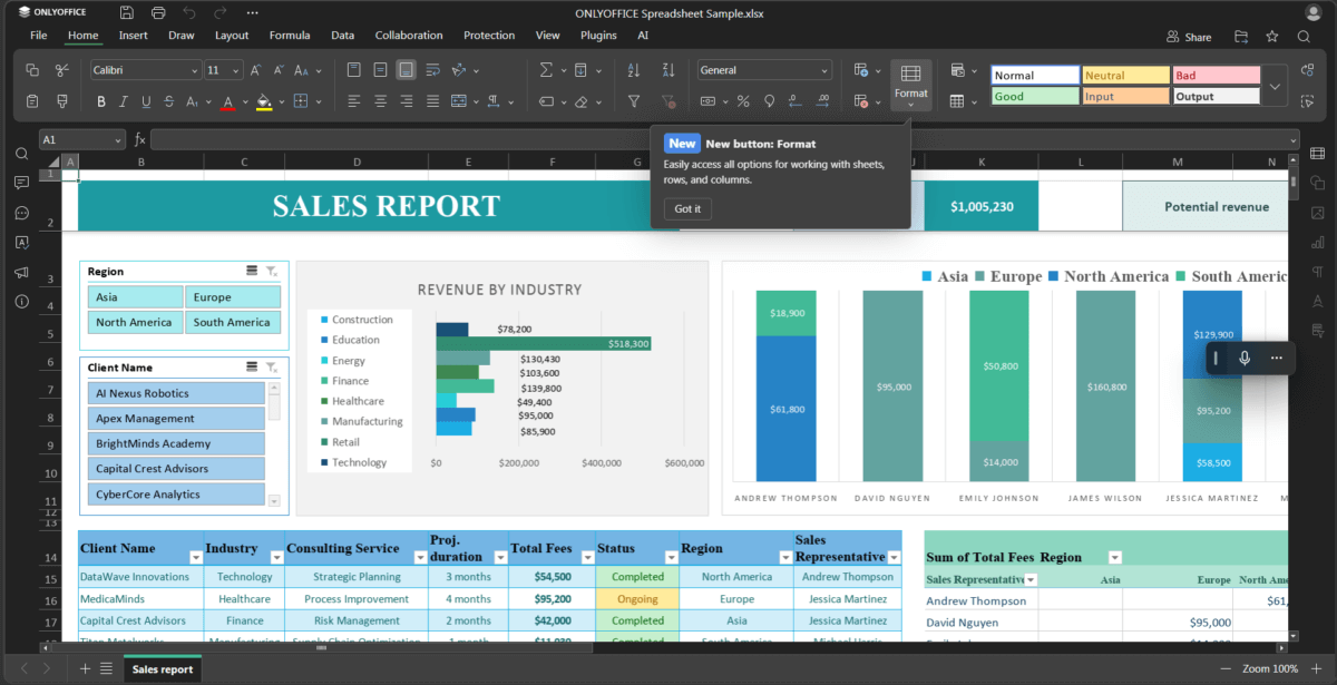 - Interfaz muy familiar, con cinta de opciones como Excel.