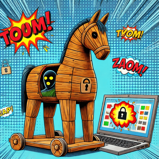 - Caballo de Troya (Troyano): Es un programa que parece legítimo pero, una vez instalado, permite a los atacantes tomar el control del sistema, robar datos o instalar otro malware. No se replica como un virus, pero puede ser extremadamente dañino.